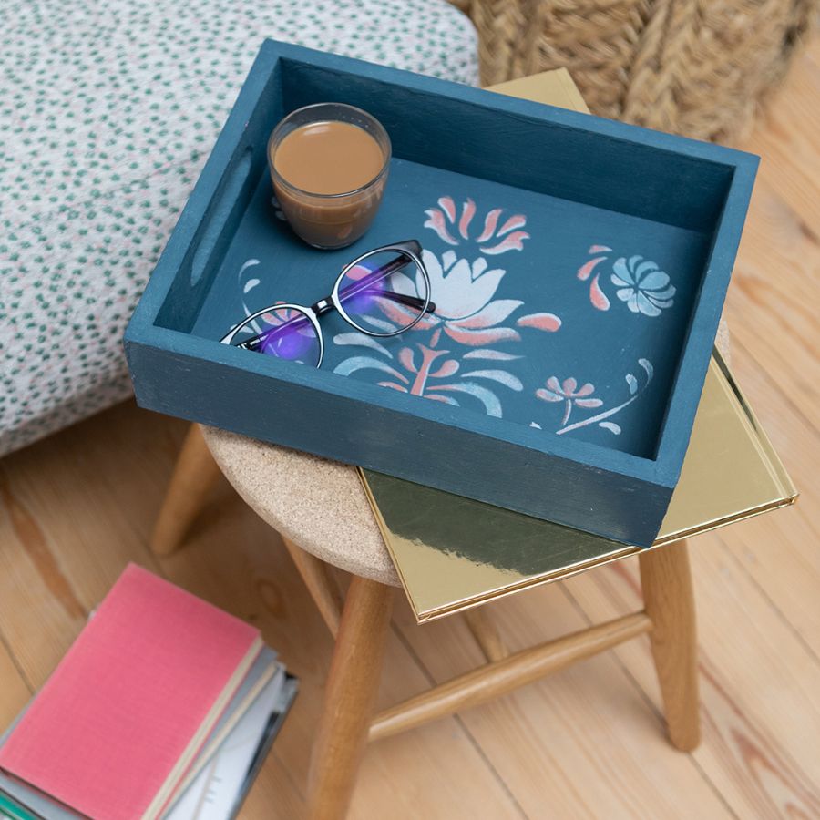 Только у нас в мастерской вы получите такую уникальную возможность создать по-шагово красивый поднос используя волшебные меловые краски Annie Sloan.